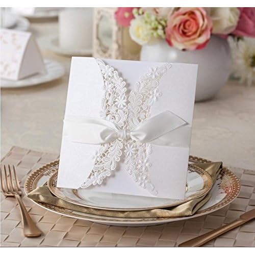 Chic Vstoy Lot De 20 Faire Part Pour Mariage Avec Rubans Motif
