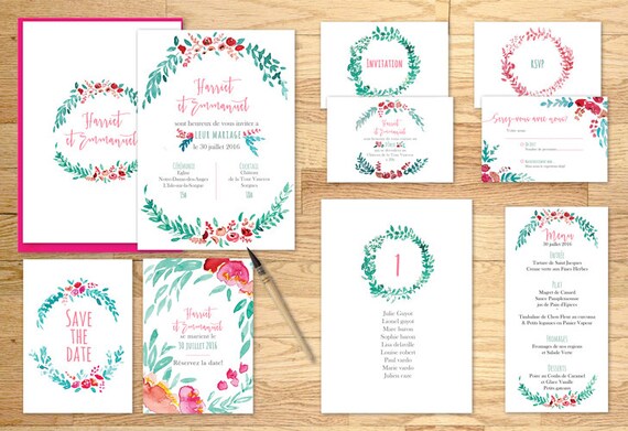 Pack Imprimable Faire Part Mariage Couronne De Fleurs Pack