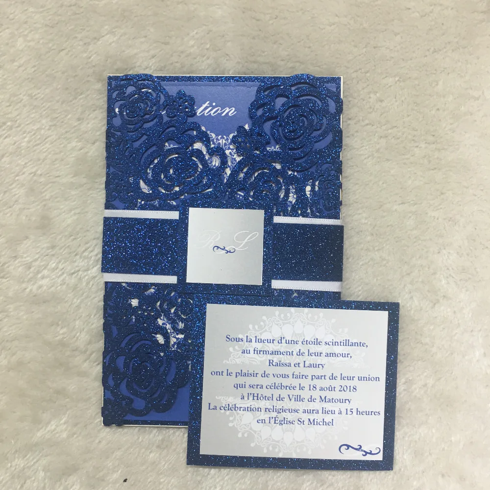 Luxueux Decoupe Au Laser Glitter Papier 3d Cartes D Invitation Pour