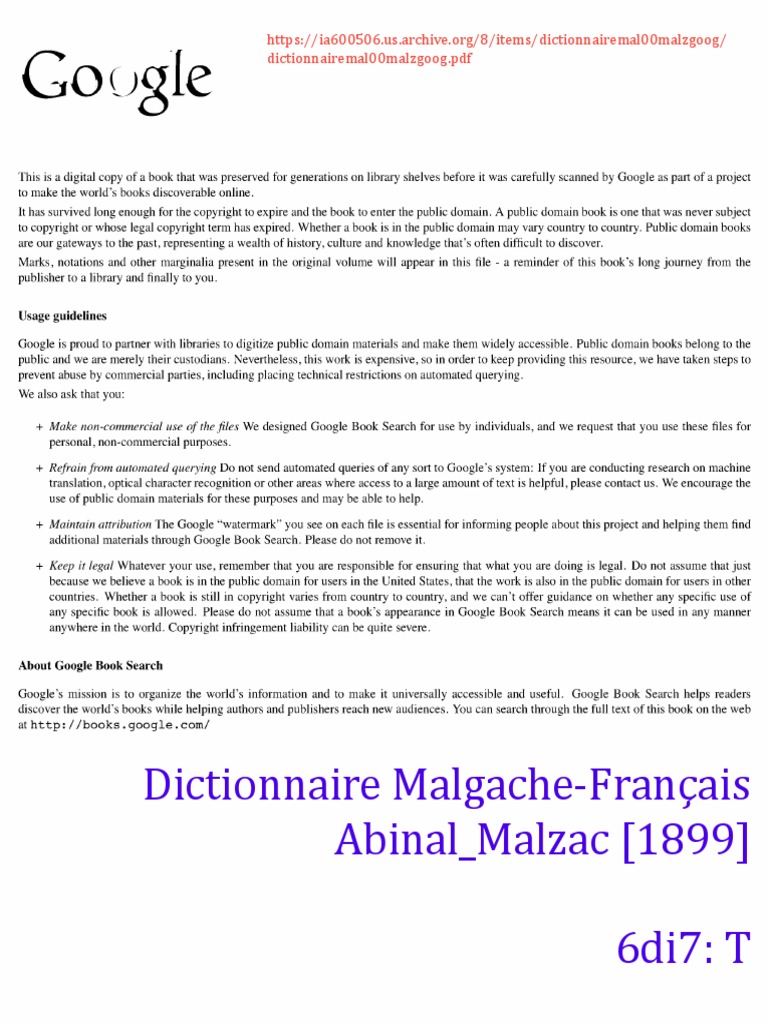 T 6di7 Dictionnaire Malgache Francais Abinal Malzac 1899 Nature